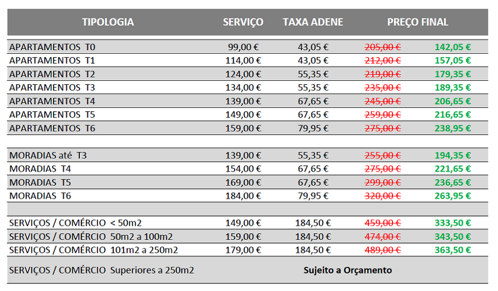 No caso de não possuir Planta do Imóvel (à escala 1:100) o valor é acrescido de 15,00€ para Apartamentos e 25,00€ para Moradias.